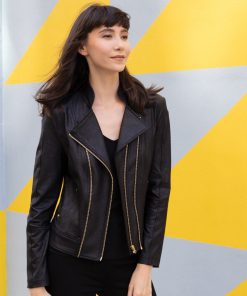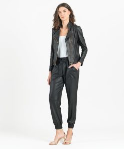 Clara Sunwoo Liquid Leatherâ„¢ Drape Neck Zip Jacket – Black black | Womens Jackets + Blazers