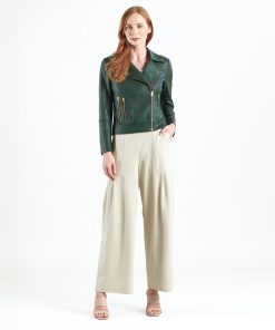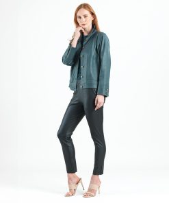 Clara Sunwoo Liquid Leatherâ„¢ Moto Zip Jacket – Hunter Green huntergreen | Womens Jackets + Blazers