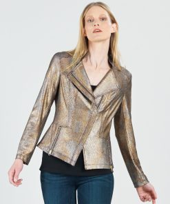 Clara Sunwoo Liquid Leather™ Textured Biker Jacket – Crocodile olive | Womens Jackets + Blazers