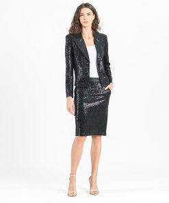 Clara Sunwoo Shimmer Sequin – Modern Button Blazer – Gunmetal gunmetal | Womens Jackets + Blazers
