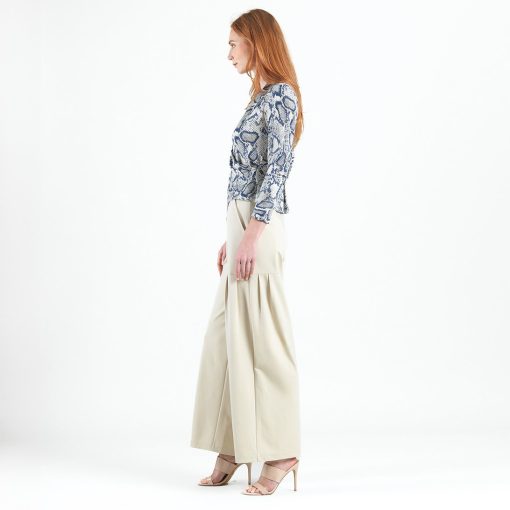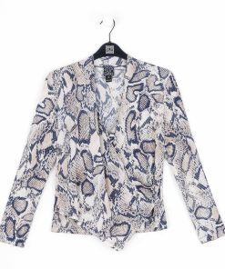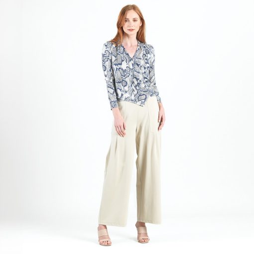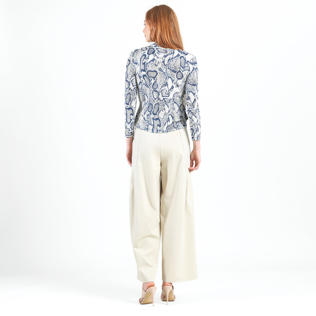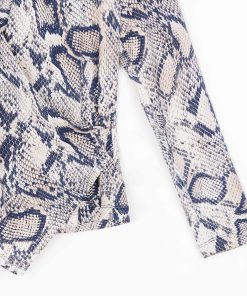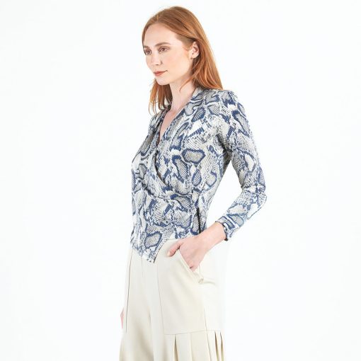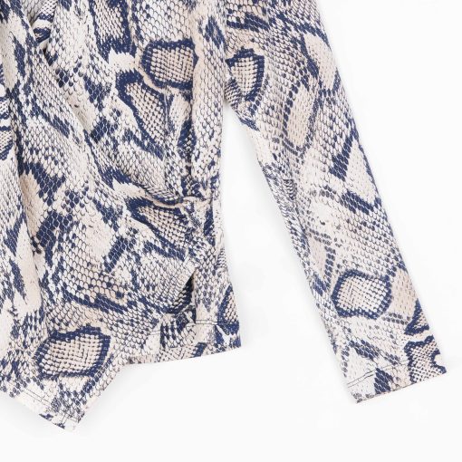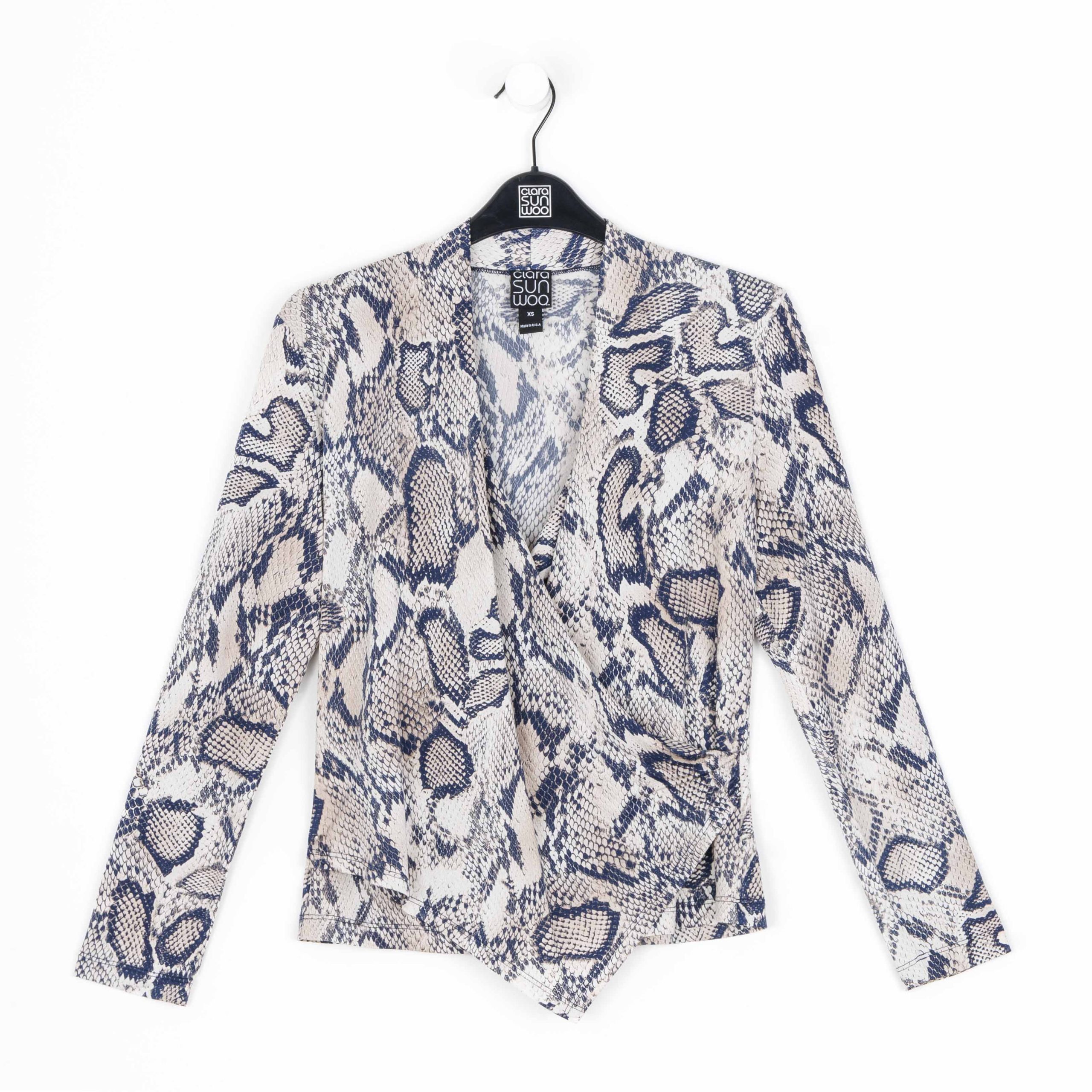 Clara Sunwoo Butter Knit – Long Sleeve Crossover Faux Wrap Top – Python Scale – Final Sale! taupeblack | Womens Tops + Tunics