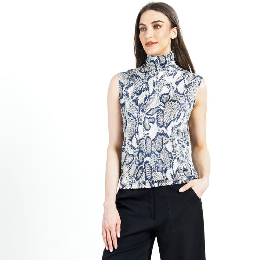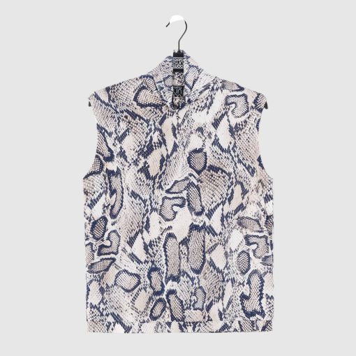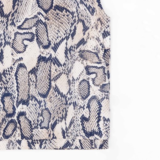Let our Python Scale Butter Knit Mock Neck Box Tank slither its way into your closet! The perfect year-round piece features a standard mock neckline, a forgiving boxy silhouette, and a straight hemline with a banded seam. Incorporate this tank into your wardrobe for seasonal transition styling! A visually striking print, displaying python scales in shades of navy, ivory, and dark taupe, over a creamy-beige background. ♥ Each piece is a unique, one-of-a-kind print and print placement will vary. An elegant, translucent fabric, inspired by luxe satin fibers. Designed to beautifully drape against the body, with the softest, velvety-silken-like finish, while being cool and smooth to the touch.Carefree Travel Fabric – Soft Silky Buttery Knit Our signature poly blend fibers create an ultra-soft, buttery feels that’s wrinkle-free and perfect for traveling. Enjoy the luxurious sensation and an indulgent touch of our fabric – you’ll never want to take it off!Wrinkle Free Travel Friendly Ultra Lightweight Soft Buttery Knit Fabric Breathable Jersey-Like Feel