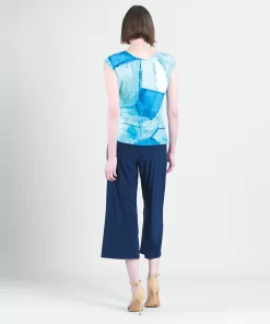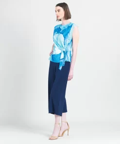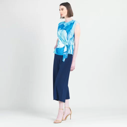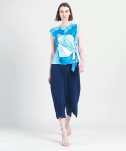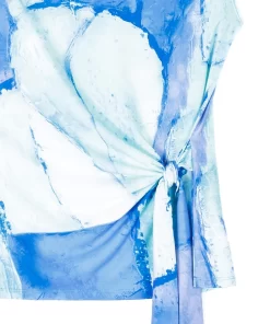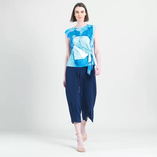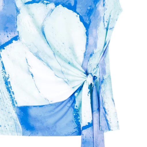Clara Sunwoo Cap Sleeve Side Tie Top – Water Splash – Final Sale! periblue | Womens Tops + Tunics