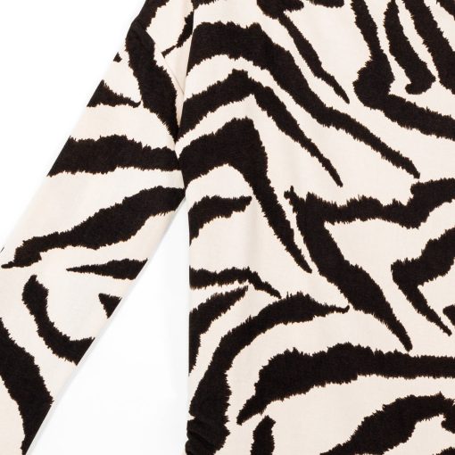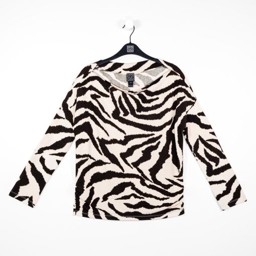 You were born to stand out in our Cozy Zebra Boat Neck Side Ruched Sweater Top! This style features a boat neckline that can also be worn off one shoulder, long sleeves, side ruched details that accentuate the natural curve, and a straight hemline. A flattering, large-scale zebra print in brown is displayed against a creamy beige background. ♥ Each piece is a unique, one-of-a-kind print and print placement will vary. Cozy Sweater KnitOur cozy sweaters are designed for optimal comfort and convenience. Made from lightweight soft plush knit and Poly-Blend fibers, they are the perfect addition to any wardrobe. Ideal for layering and is travel-friendly but still breathable enough to keep you from getting too warm. Easy to care for and long-lasting, they are sure to become a staple in your everyday. Travel Friendly Lightweight Sweater Knit Soft Plushy Texture