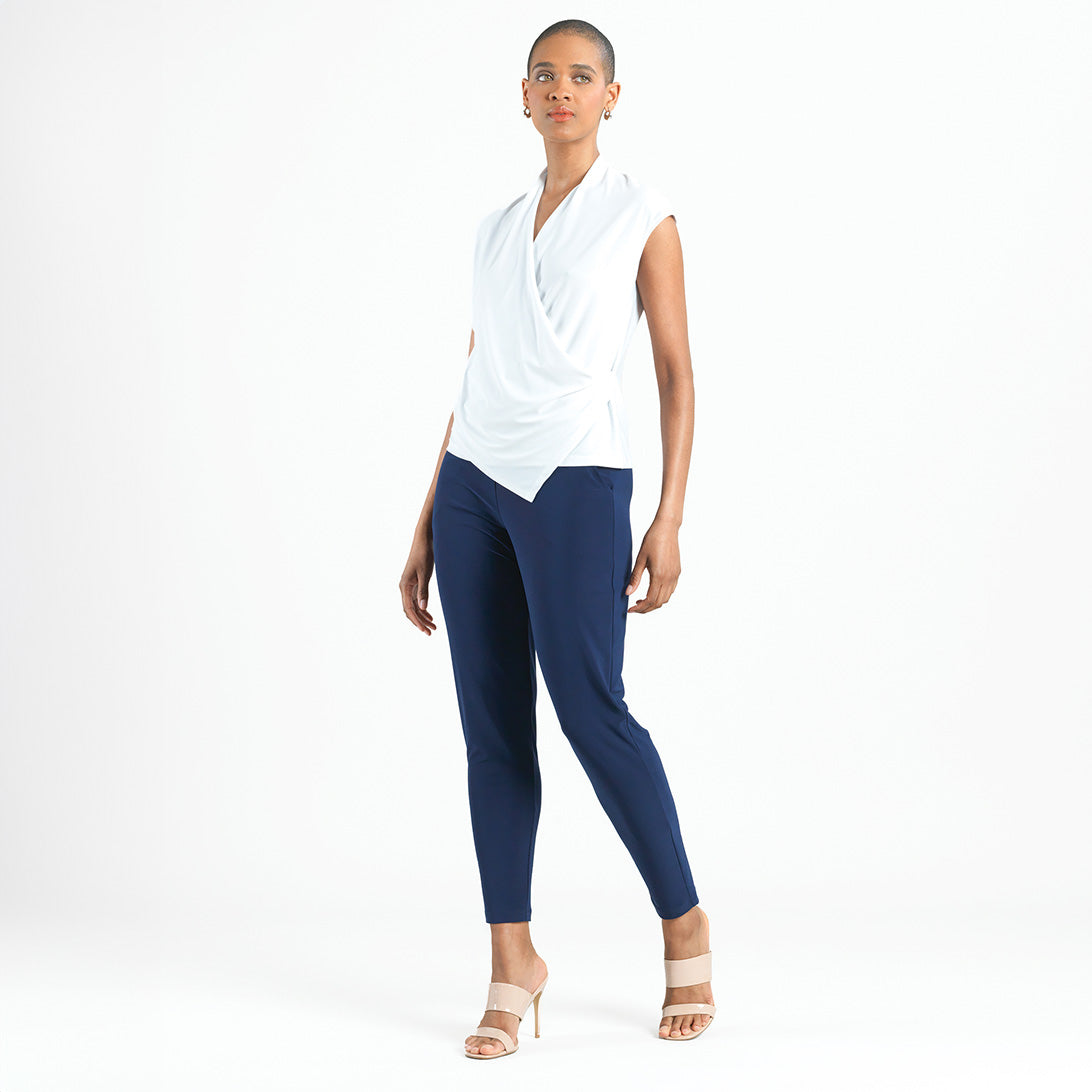 Our Crossover Faux Wrap Top is the calm in a fashion storm! This top features a cross-over, high surplice neckline, cap sleeves, and a faux wrap bodice with a modern overlay, against a straight hemline.This flattering look is versatile enough to transition from day to night effortlessly, flattering the figure and keeping you comfortable. Carefree Travel Fabric – Soft Silky Knit Our signature poly blend fibers offer luxurious softness with lightweight, wrinkle-free comfort. This easy-care fabric is quick drying and cooler than linen or cotton, making it perfect for on-the-go wear.Wrinkle Free Travel Friendly Ultra Lightweight Soft Knit Fabric Breathable Jersey-Like Feel