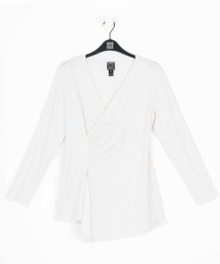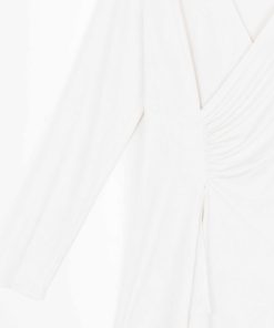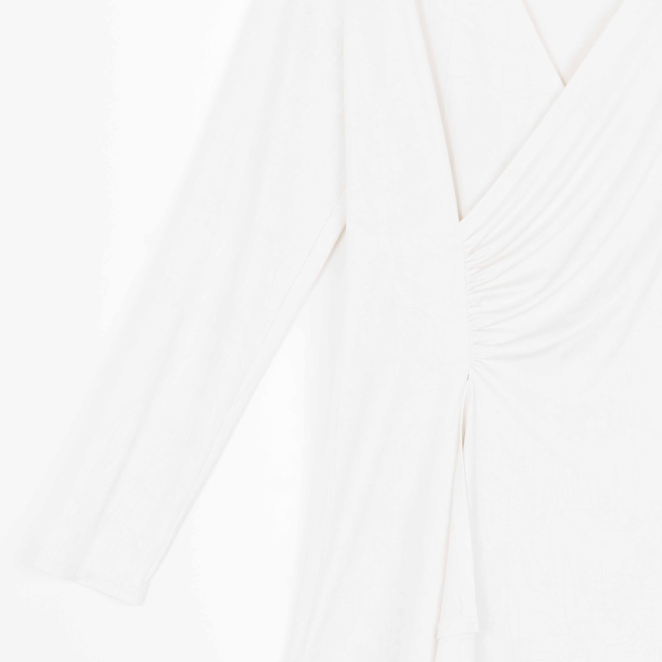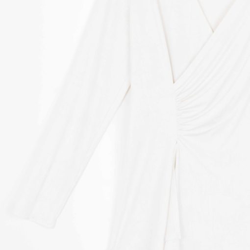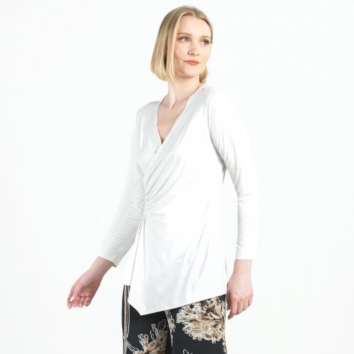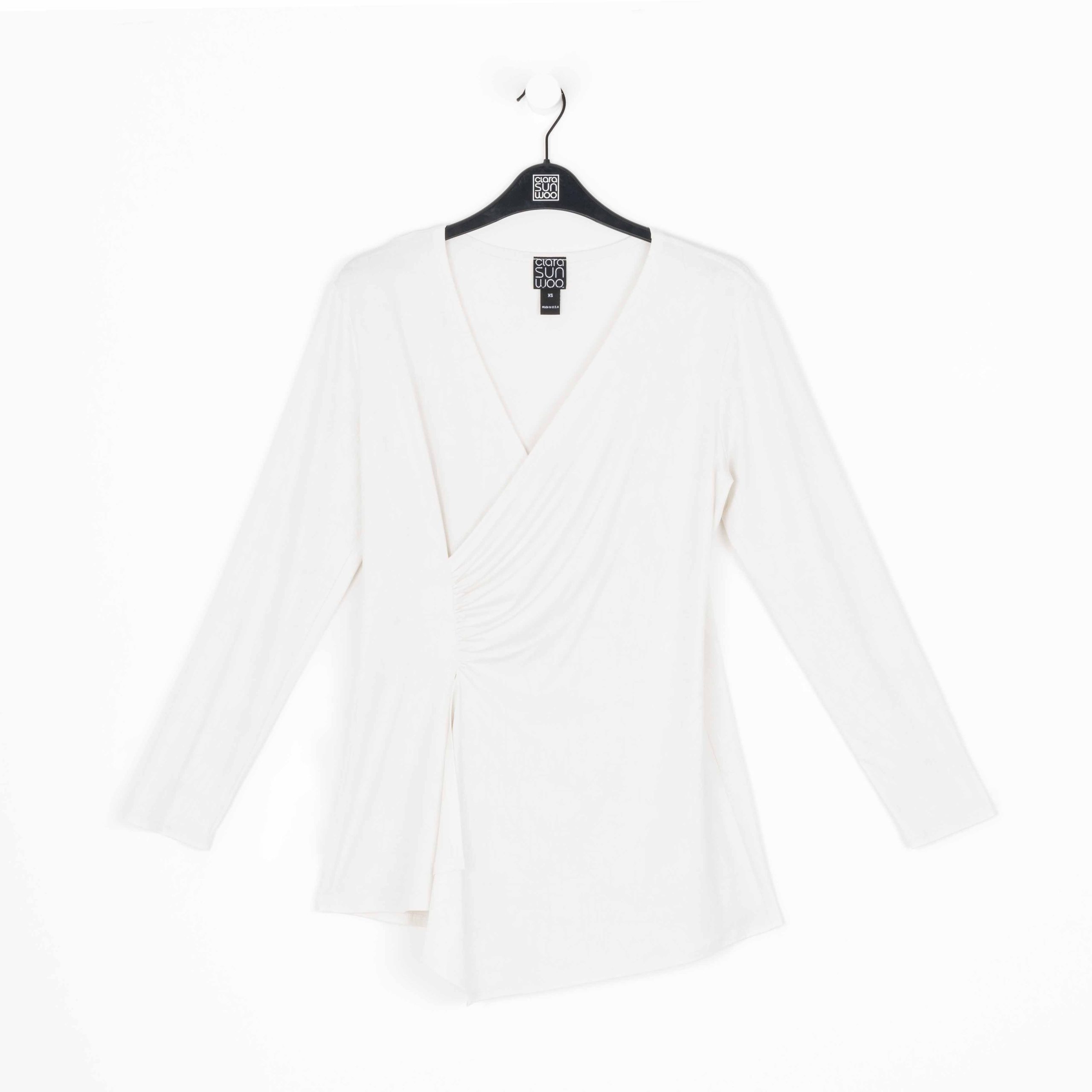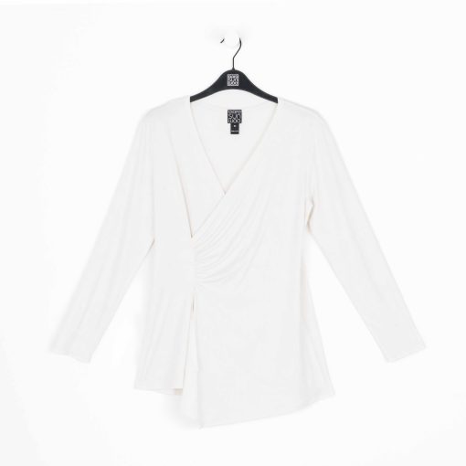Clara Sunwoo Crushed Silk Knit – Long Sleeve Side Gathered Drape Tunic – Ivory – Final Sale! ivory | Womens Tops + Tunics