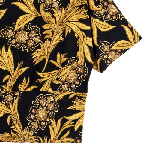 Looking for a luxurious, ornate pattern reminiscent of classical art? Well, look no further than our Baroque Paisley Dolman Half Sleeve Top! Featuring a wide neckline, dolman half sleeves, and a waist-hugging hemline, that displays an elegant blouson silhouette. An opulent print that features intricate baroque motifs intertwined by dynamic paisley shapes in rich shades of gold and black, which evoke a sense of regal sophistication. ♥ Each piece is a unique, one-of-a-kind print and print placement will vary.Carefree Travel Fabric – Soft Silky Knit Our signature poly blend fibers offer luxurious softness with lightweight, wrinkle-free comfort. This easy-care fabric is quick drying and cooler than linen or cotton, making it perfect for on-the-go wear.Wrinkle Free Travel Friendly Ultra Lightweight Soft Knit Fabric Breathable Jersey-Like Feel