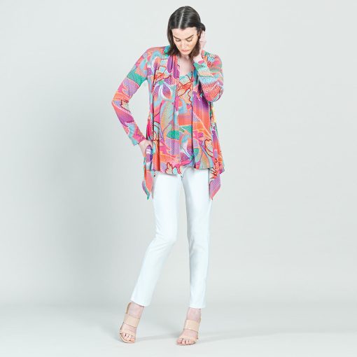 Water your closet with our Mosaic Petal Drape Tunic Cardigan & Tank Set and your wardrobe is sure to bloom! This effortless cardigan features long sleeves, an open front with no closure, and a draping silhouette with a matching bra-friendly mid-length tank. An exuberant print, displaying an arrangement of mosaic pieces, in large-scale petal shapes, in coral and multi-color shades. ♥ Each piece is a unique, one-of-a-kind print and print placement will vary.Carefree Travel Fabric – Soft Silky Knit Our signature poly blend fibers offer luxurious softness with lightweight, wrinkle-free comfort. This easy-care fabric is quick drying and cooler than linen or cotton, making it perfect for on-the-go wear.Wrinkle Free Travel Friendly Ultra Lightweight Soft Knit Fabric Breathable Jersey-Like Feel