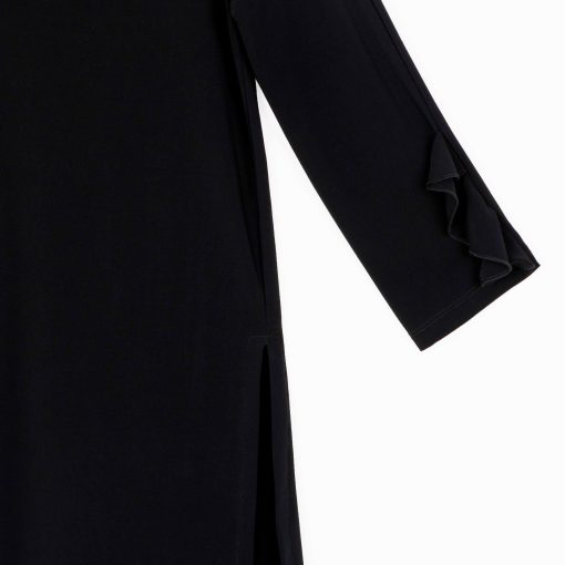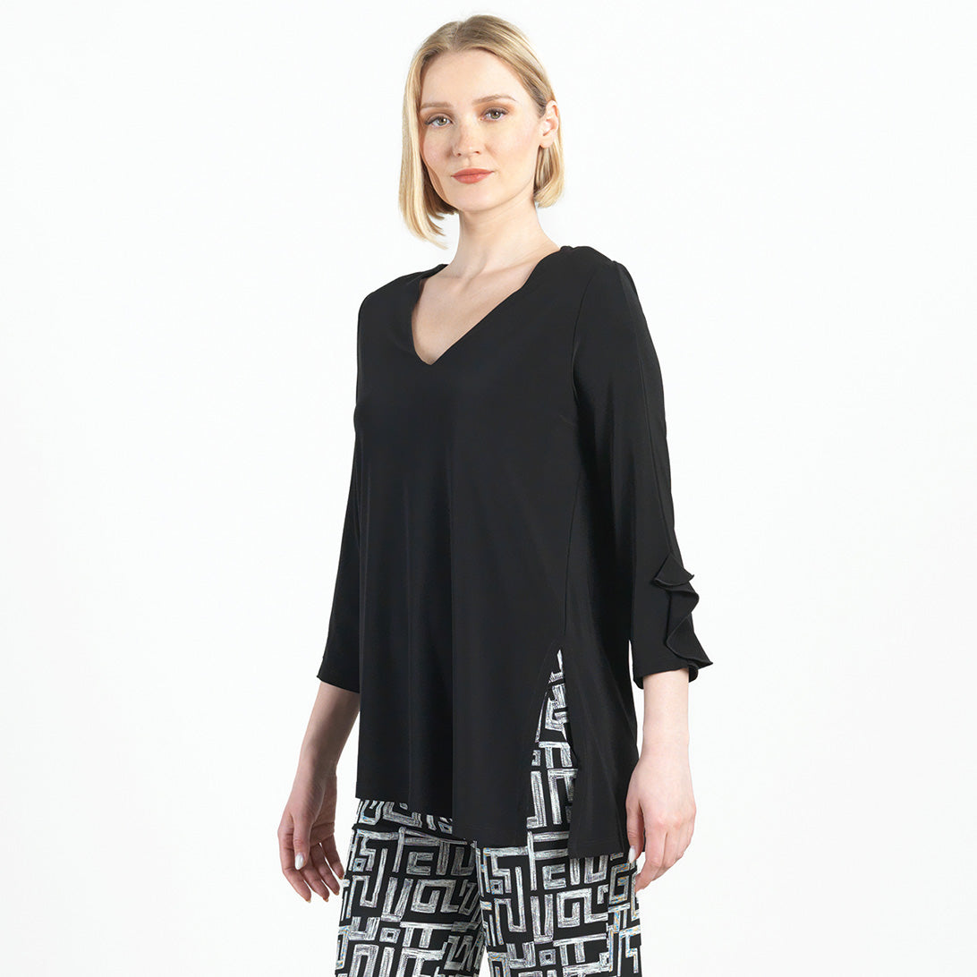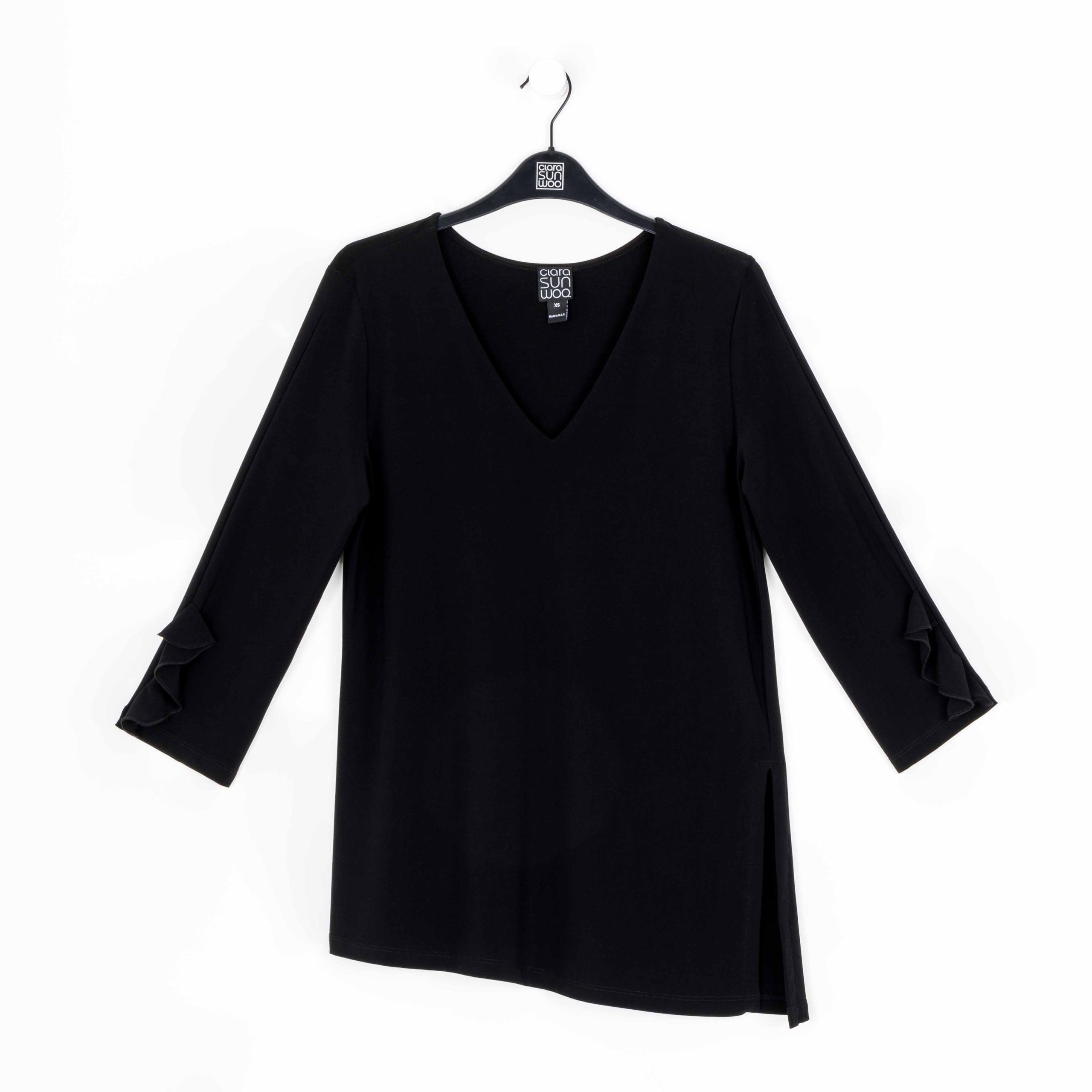 A style you’re sure to feel butterflies for can be found in our Flutter Cuff Side Vent Tunic! This style features a v-neckline, 3/4 length sleeves with charming flutter cuff details, and an asymmetrical hemline with a 10″ left-side vent. Carefree Travel Fabric – Soft Silky Knit Our signature poly blend fibers offer luxurious softness with lightweight, wrinkle-free comfort. This easy-care fabric is quick drying and cooler than linen or cotton, making it perfect for on-the-go wear.Wrinkle Free 10″ Left-Side Vent Travel Friendly Ultra Lightweight Soft Knit Fabric Breathable Jersey-Like Feel