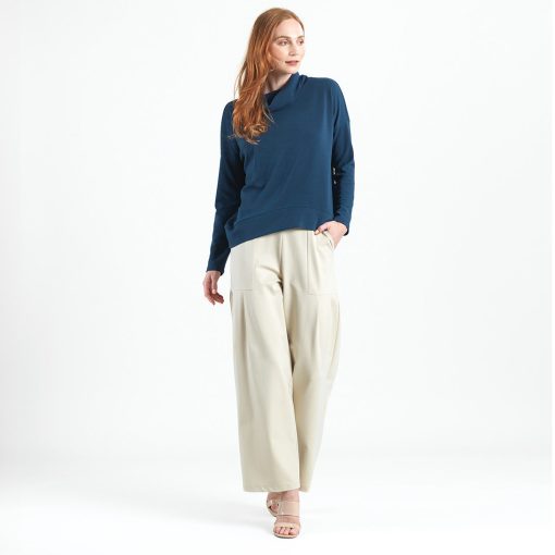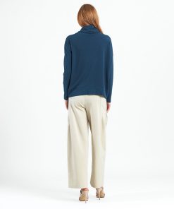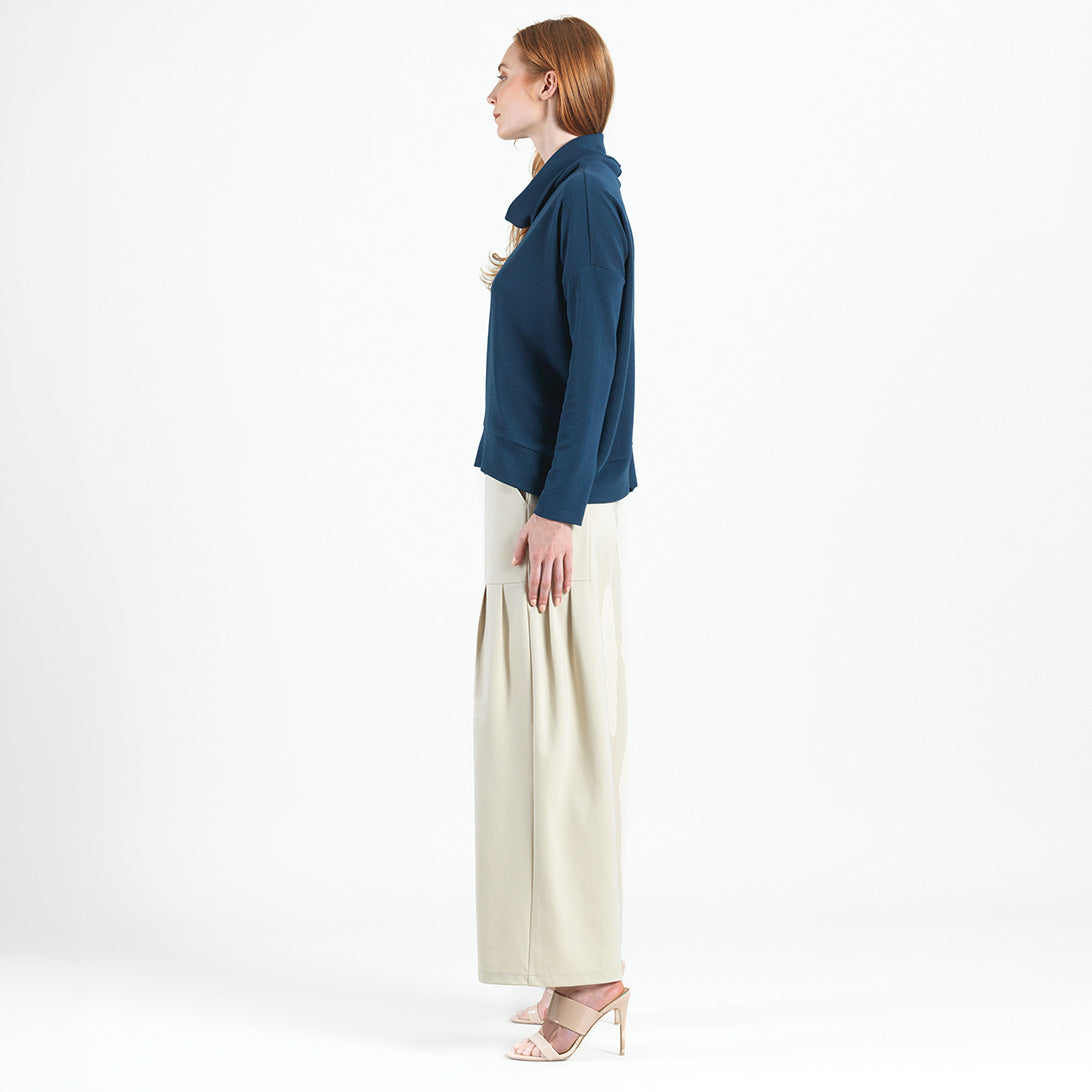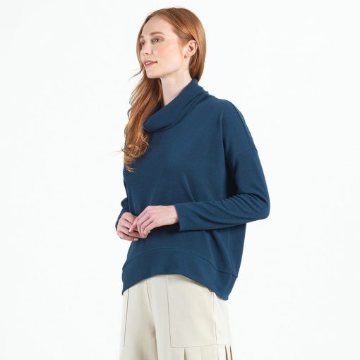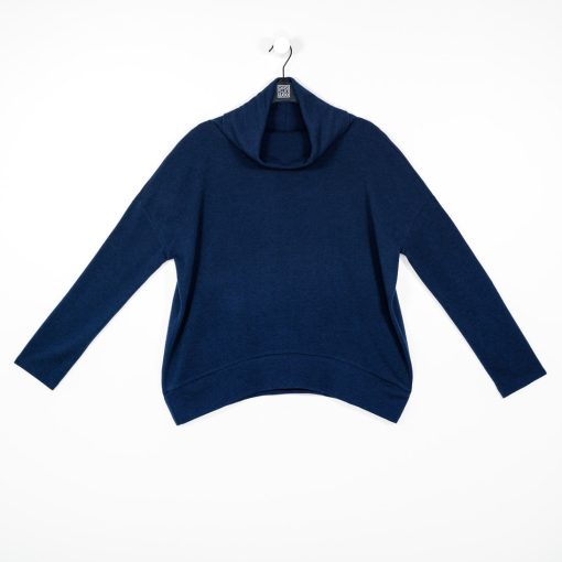 Clara Sunwoo French Terry-Like Knit – Cowl Turtleneck Sweater Top – Midnight Blue – Final Sale! midnightblue | Womens Sweaters