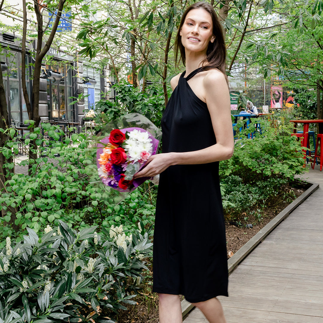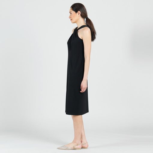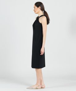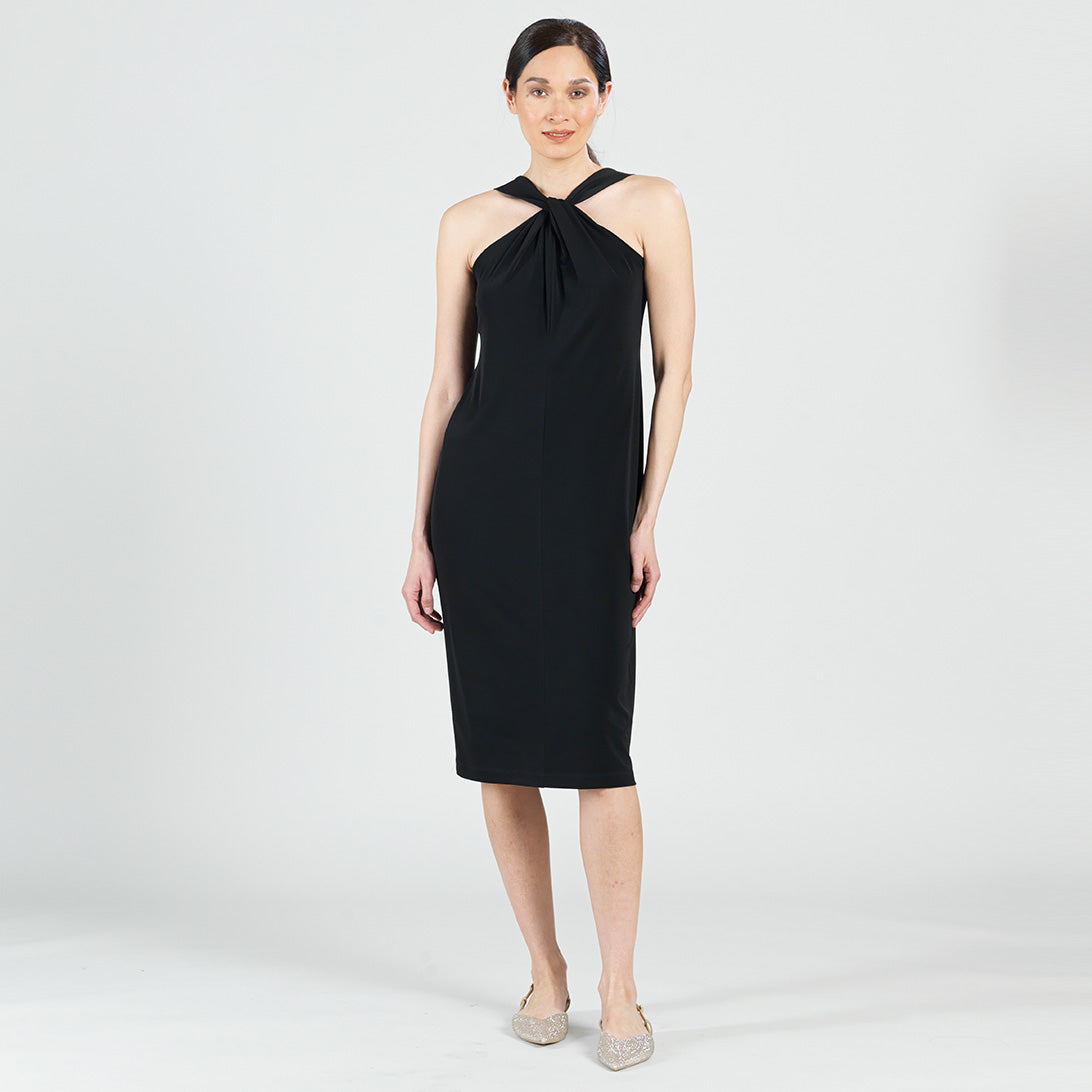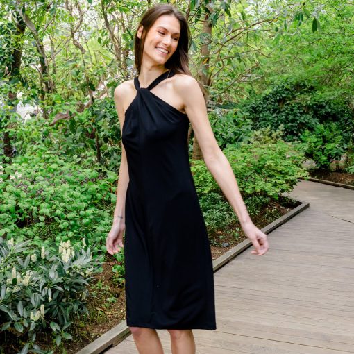 Our Grecian Halter Neckline Midi Sheath Dress will have you feeling like a modern-day goddess! Featuring a feminine Grecian halter neckline, that transitions into two standard back straps, and a bodice that naturally drapes down into a sheath silhouette with a figure-flattering, midi hemline. ♥ Can also be worn off the shoulder for an alternative neckline!Carefree Travel Fabric – Soft Silky Knit Our signature poly blend fibers offer luxurious softness with lightweight, wrinkle-free comfort. This easy-care fabric is quick drying and cooler than linen or cotton, making it perfect for on-the-go wear.Wrinkle Free Travel Friendly Ultra Lightweight Soft Knit Fabric Breathable Jersey-Like Feel