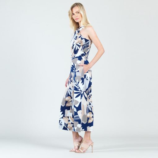 Clara Sunwoo Grecian Halter Pocket Jumpsuit – Geo Flower – Final Sale! peachnavy | Womens Dresses + Jumpsuits