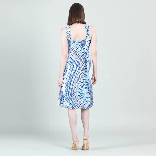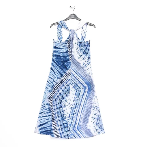 Our Acid Wash Grecian Halter Swing Dress is to dye for! Featuring a feminine Grecian halter neckline, that transitions into two standard back straps, a bodice that naturally drapes to create an a-line silhouette that flares down your body’s natural curves, and compliments and hides any flaws A stunning acid wash print, comprised of oceanic shades of navy, sky, baby blues, and white, with subtle hints of teal and beige, that display a tie-dye effect, in sunburst shapes. ♥ Each piece is a unique, one-of-a-kind print and print placement will vary. Carefree Travel Fabric – Soft Silky Knit Our signature poly blend fibers offer luxurious softness with lightweight, wrinkle-free comfort. This easy-care fabric is quick drying and cooler than linen or cotton, making it perfect for on-the-go wear. Wrinkle Free Travel Friendly Ultra Lightweight Soft Knit Fabric Breathable Jersey-Like Feel