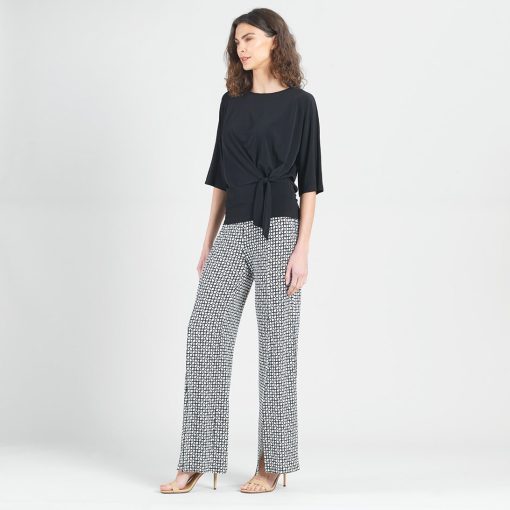 Clara Sunwoo Kick Front High Slit Pant – Chain Ring – Final Sale! ivoryblack | Womens Pants + Skirts