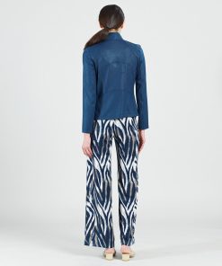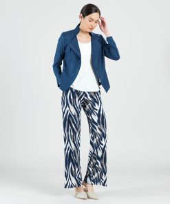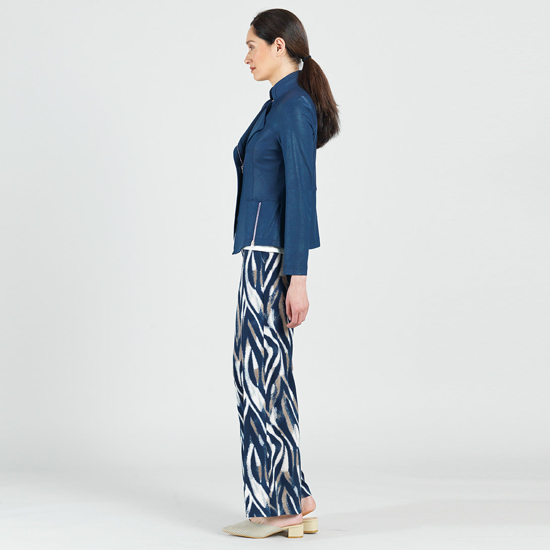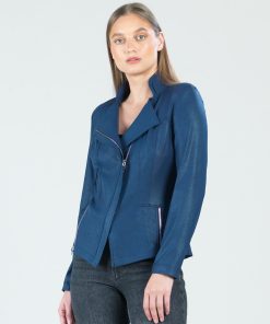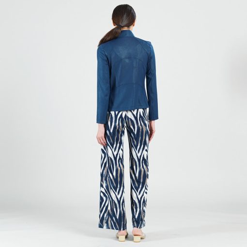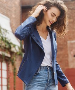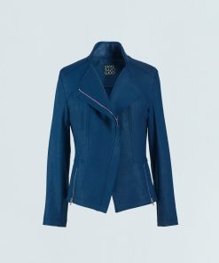 Your browser does not support our video.Let our faux Liquid Leather Signature Jacket pour all over you as it is made from our beautiful signature stretch knit, extremely lightweight soft “lambskin feel” fabric with a soft matte finish. This jacket features a notched lapel with upright collar, long sleeves, silver a-symmetrical zip closure, faux pocket zipper slits as well as complimentary detailed front and backstitching. Our Navy shade a is stunning mid-tone color with neutral undertones. The interior is made from soft knit giving it the right amount of stretch with breathable superb wear that conforms to your body and provides you with a figure-flattering silhouette and best of all it’s vegan friendly! For a casual look, pair this stunning jacket with your favorite pair of blue jeans! Clara Sunwoo | Favorite Things from CS on Vimeo.Liquid Leather KnitThis vegan-friendly fabric offers superior comfort and style. Crafted from our signature flexible polyester blend and coated in a faux leather-like matte finish, it’s cool to the touch, quick-drying, and easy to maintain. Enjoy the look and feel of leather without the guilt.Travel Friendly Ultra Lightweight Soft Knit Fabric – Faux Leather Matte Finish Vegan Friendly!