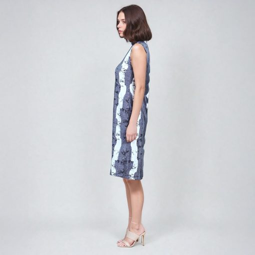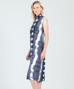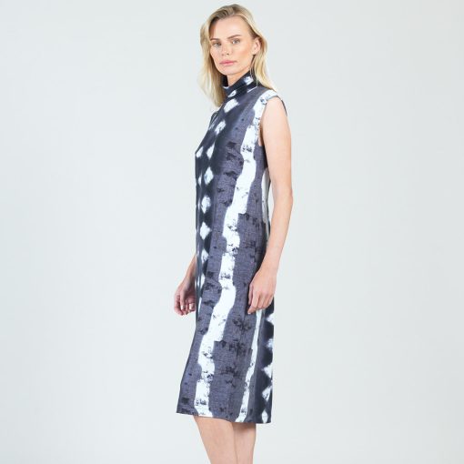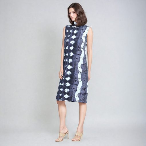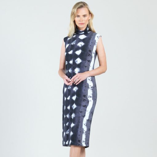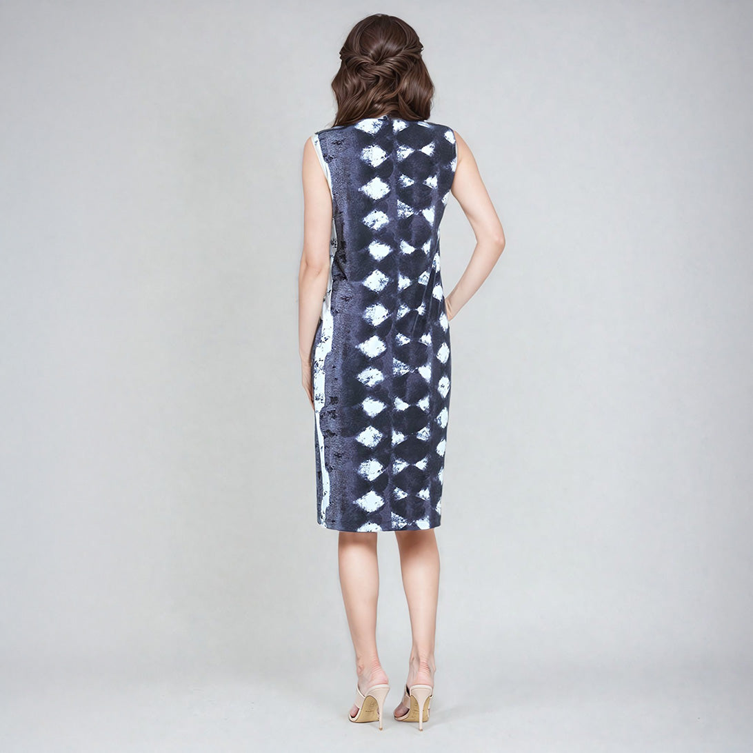 No pressure, but our Diamond Grey-Scale Mock Neck Midi Sheath Dress is sure to be your best friend! This sleeveless dress features a mock neckline and a straight sheath silhouette with a figure-flattering midi hemline. Our diamond denim print features an intricate pattern of white diamond shapes against tones of black, charcoal, and slate grey.Each cut of fabric is unique and different, delivering a one-of-a-kind look to every dress. Carefree Travel Fabric – Soft Silky KnitOur signature poly blend fibers offer luxurious softness with lightweight, wrinkle-free comfort. This easy-care fabric is quick drying and cooler than linen or cotton, making it perfect for on-the-go wear. Wrinkle Free Travel Friendly Ultra Lightweight Soft Knit Fabric Breathable Jersey-Like Feel