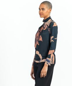 With a style this beautiful, you’re bound to gild our Abstract Lily Mock Neck Pleated Detail Top! Featuring a mock neckline, long sleeves, and a feminine, center pleated detail that begins at the neck and transitions out to a soft-draped body and straight hemline. A large-scale print displaying abstract lily flowers in a gradient of pale tawny-brown and warm tan shades, against a black background. **please refer to photos for color accuracy ♥ Each piece is a unique, one-of-a-kind print and print placement will vary. Carefree Travel Fabric – Soft Silky Knit Our signature poly blend fibers offer luxurious softness with lightweight, wrinkle-free comfort. This easy-care fabric is quick drying and cooler than linen or cotton, making it perfect for on-the-go wear.Wrinkle Free Travel Friendly Ultra Lightweight Soft Knit Fabric Breathable Jersey-Like Feel