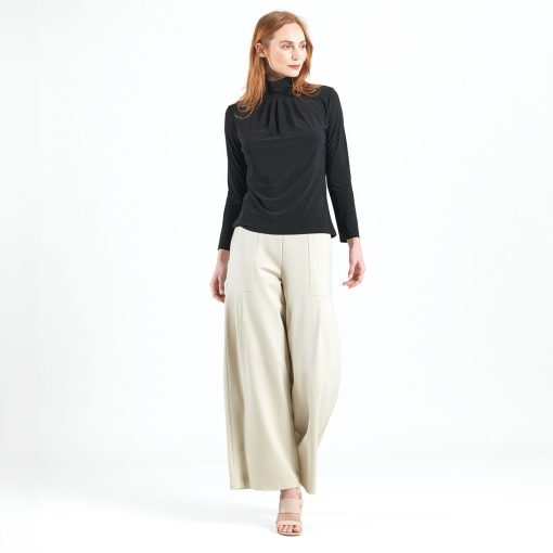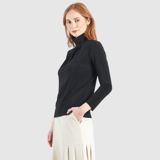 Other styles may find it hard to compete with our Mock Neck Pleated Detail Top! Featuring a mock neckline, long sleeves, and a feminine, center pleated detail that begins at the neck and transitions out to a soft-draped body and straight hemline. Carefree Travel Fabric – Soft Silky Knit Our signature poly blend fibers offer luxurious softness with lightweight, wrinkle-free comfort. This easy-care fabric is quick drying and cooler than linen or cotton, making it perfect for on-the-go wear.Wrinkle Free Travel Friendly Ultra Lightweight Soft Knit Fabric Breathable Jersey-Like Feel