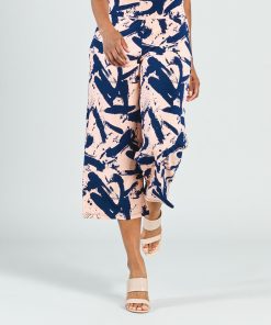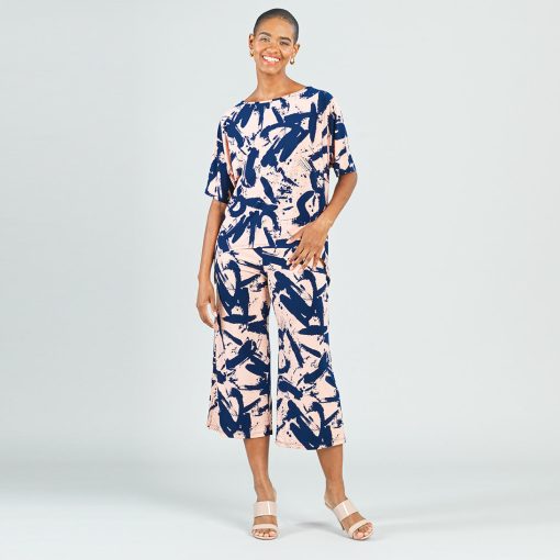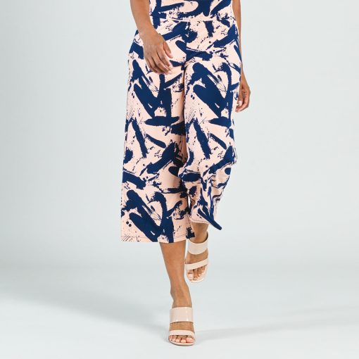 Burst into color wearing our Splash Stroke Modern Gaucho Pant! Featuring a flattering wide-leg cropped hem and a 3” pull-on soft waistband, calf-length pants are designed to naturally flow against the body.An artistic print, featuring paint splash strokes in shades of navy, against a light coral background with neutral undertones. ♥ Each piece is a unique, one-of-a-kind print and print placement will vary. Carefree Travel Fabric – Soft Silky Knit Our signature poly blend fibers offer luxurious softness with lightweight, wrinkle-free comfort. This easy-care fabric is quick drying and cooler than linen or cotton, making it perfect for on-the-go wear.Wrinkle Free Travel Friendly Ultra Lightweight Soft Knit Fabric Breathable Jersey-Like Feel