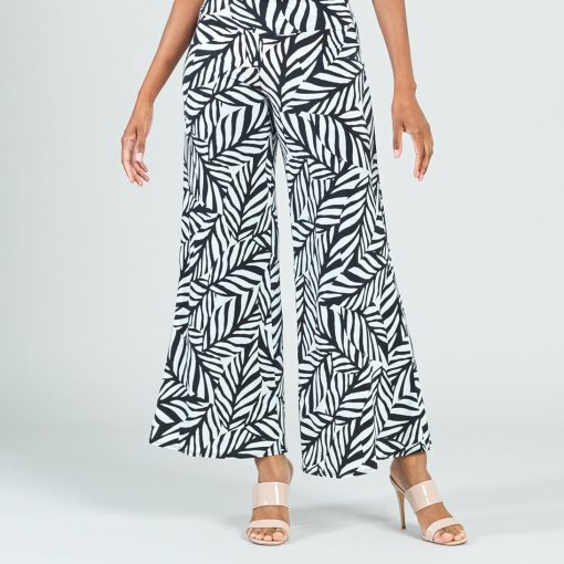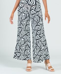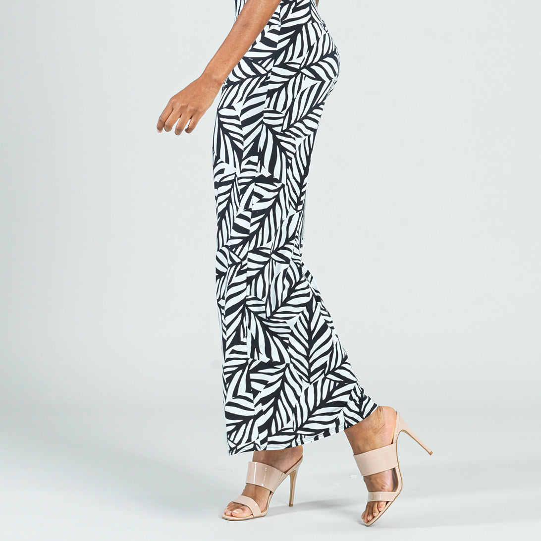 Let our Leaf Stripe Palazzo Pant help you to branch out! Featuring a 3” pull-on soft waistband and ultra-flattering wide-leg silhouette that naturally flows against the body. A large-scale leaf print in a stripe-like cluster, comprised of white and black shades. ♥ Each piece is a unique, one-of-a-kind print and print placement will vary. Carefree Travel Fabric – Soft Silky KnitOur signature poly blend fibers offer luxurious softness with lightweight, wrinkle-free comfort. This easy-care fabric is quick drying and cooler than linen or cotton, making it perfect for on-the-go wear.3″ Soft Waistband Wrinkle Free Travel Friendly Ultra Lightweight Soft Knit Fabric Breathable Jersey-Like Feel