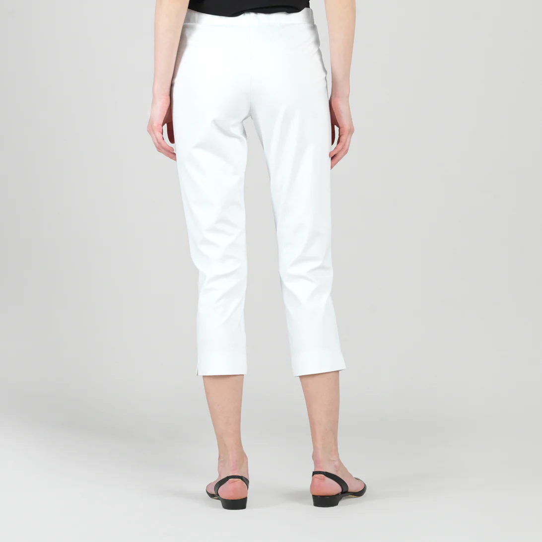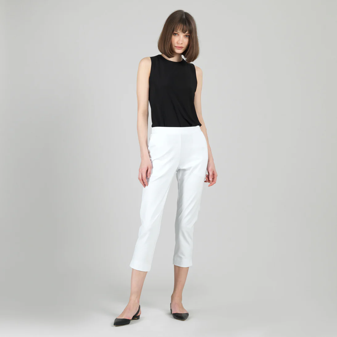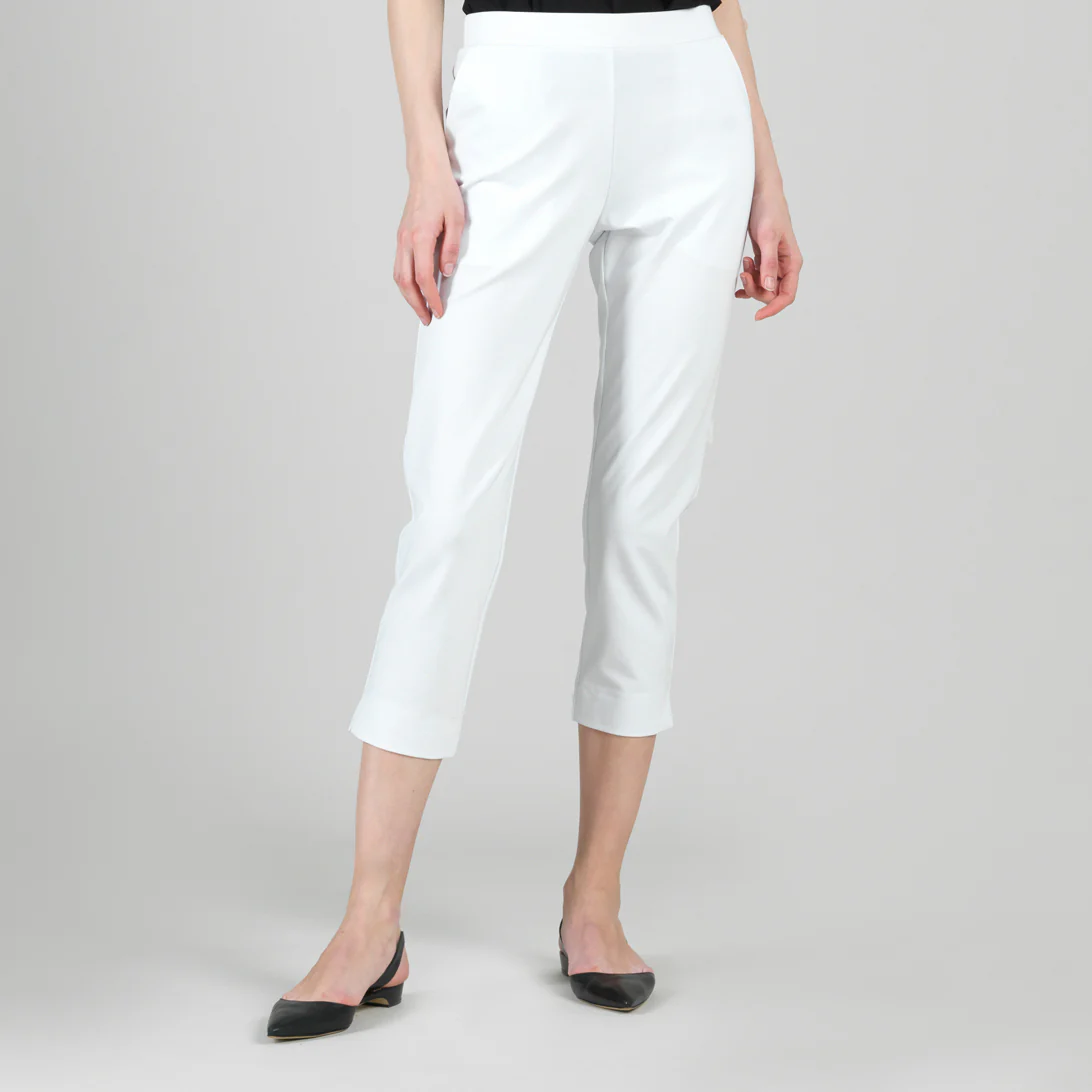 Clara Sunwoo Rayon-Ponte Knit – Pull-On Pocket Capri – White white | Womens Pants + Skirts