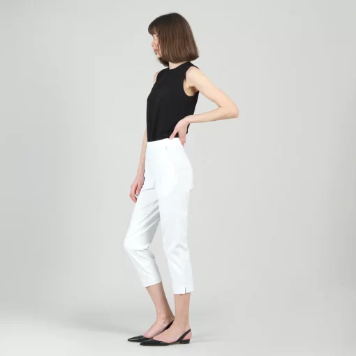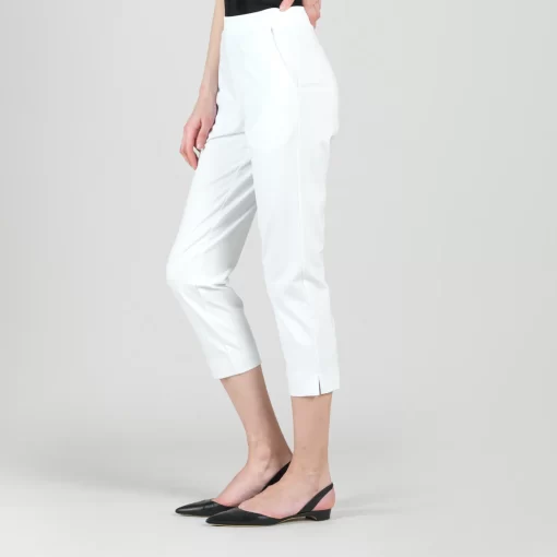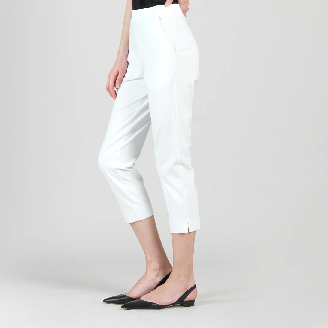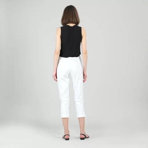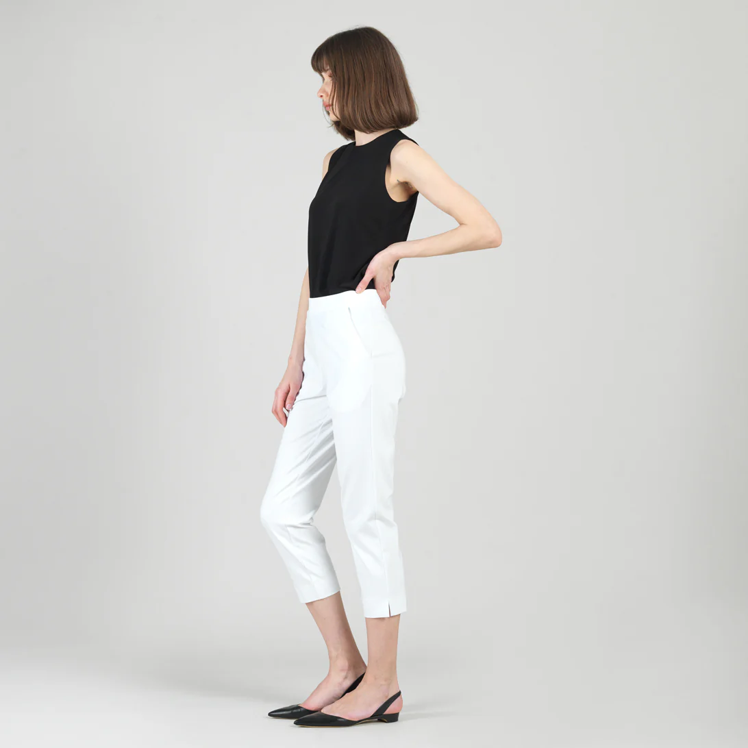 Clara Sunwoo Rayon-Ponte Knit – Pull-On Pocket Capri – White white | Womens Pants + Skirts