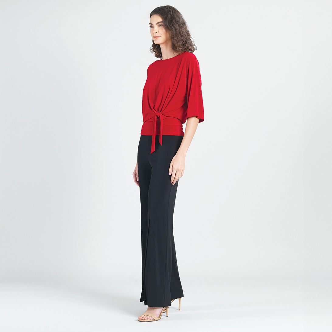 Our Side Tie Top will have you looking chic from all angles! Featuring a high round neckline, elbow-length sleeves, and side tie detail, with a waist-hugging hemline, that displays an elegant blouson silhouette. Our Red shade is a true red color with subtle brick undertones. Carefree Travel Fabric – Soft Silky KnitOur signature poly blend fibers offer luxurious softness with lightweight, wrinkle-free comfort. This easy-care fabric is quick drying and cooler than linen or cotton, making it perfect for on-the-go wear. Wrinkle Free Travel Friendly Ultra Lightweight Soft Knit Fabric Breathable Jersey-Like Feel