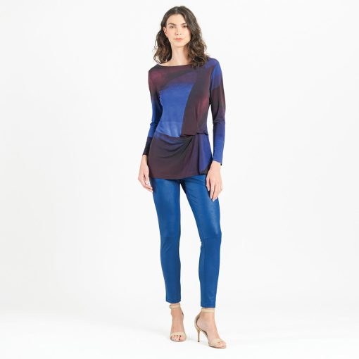 Elevate your wardrobe with the art-inspired Watercolor Side Twist Tunic! Designed with a wide round neckline, long sleeves, and a chic side twist detail, this tunic is all about effortless elegance. The straight hemline gives it a clean, modern look that’s easy to style. Immerse yourself in a palette of rich, deep colors—purple, eggplant, navy, cobalt, and black—blending beautifully to mimic the delicate strokes of a watercolor painting. Each tunic is a one-of-a-kind creation, with unique print placements that make each piece special. Hurry, limited stock available! This tunic won’t be restocked, so grab yours before it’s too late!Carefree Travel Fabric – Soft Silky Knit Our signature poly blend fibers offer luxurious softness with lightweight, wrinkle-free comfort. This easy-care fabric is quick drying and cooler than linen or cotton, making it perfect for on-the-go wear.Wrinkle Free Travel Friendly Ultra Lightweight Soft Knit Fabric Breathable Jersey-Like Feel One-of-a-kind print placement ensures every top is different