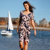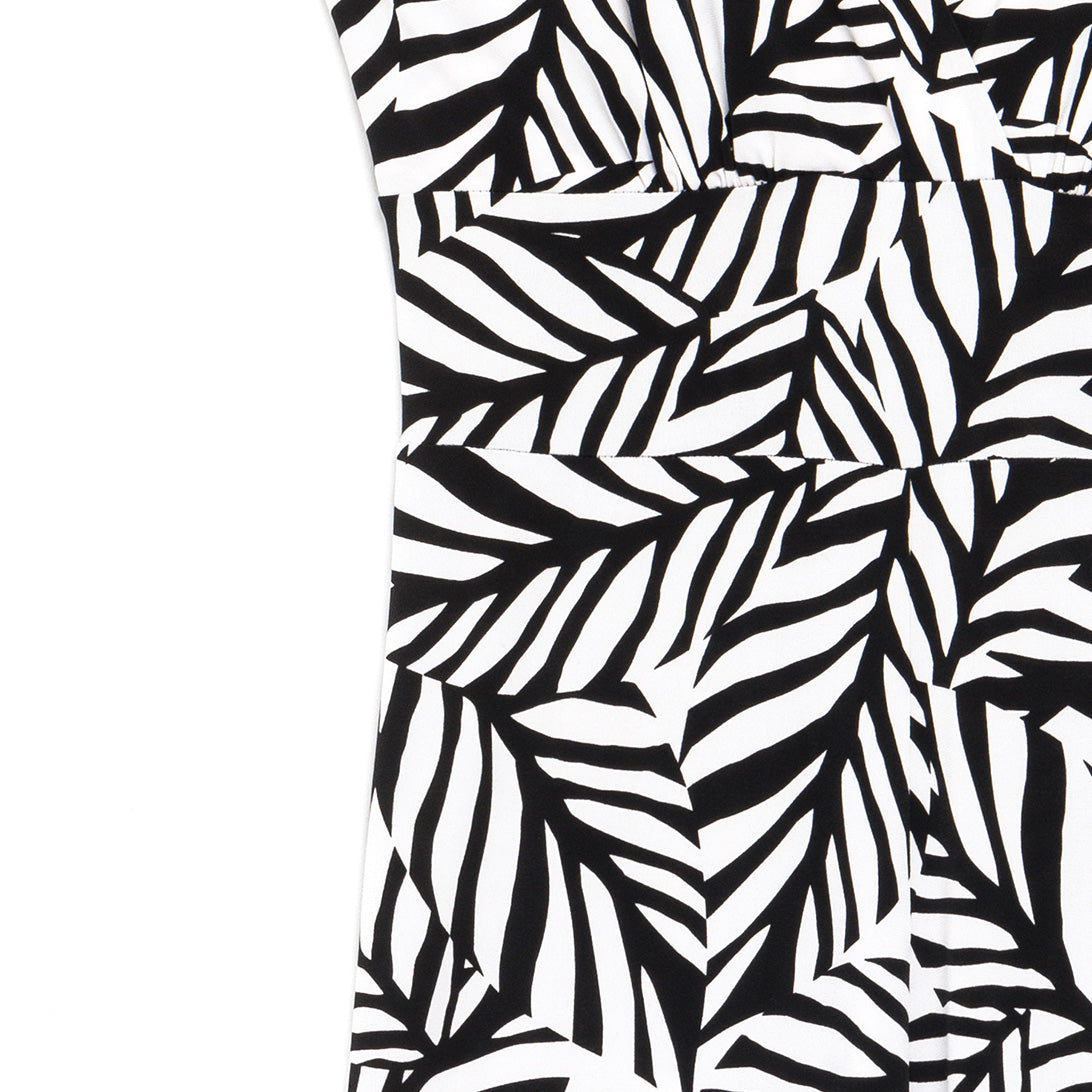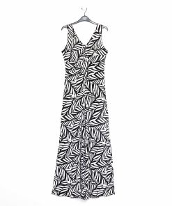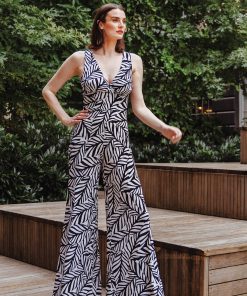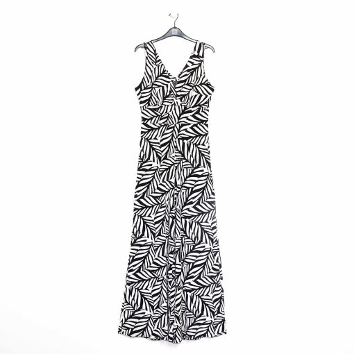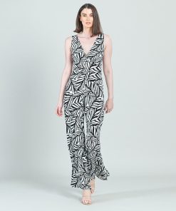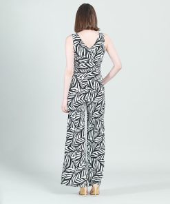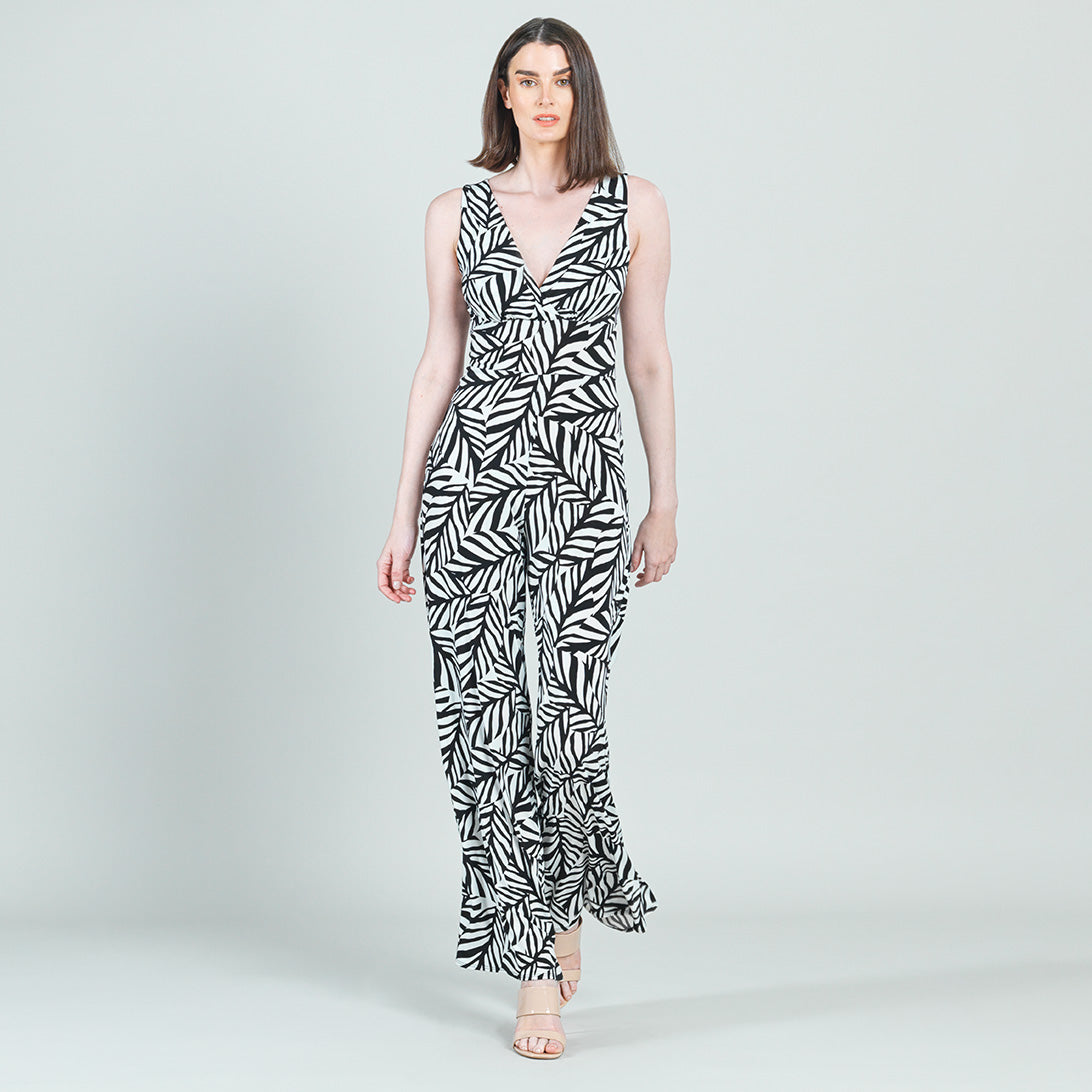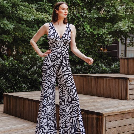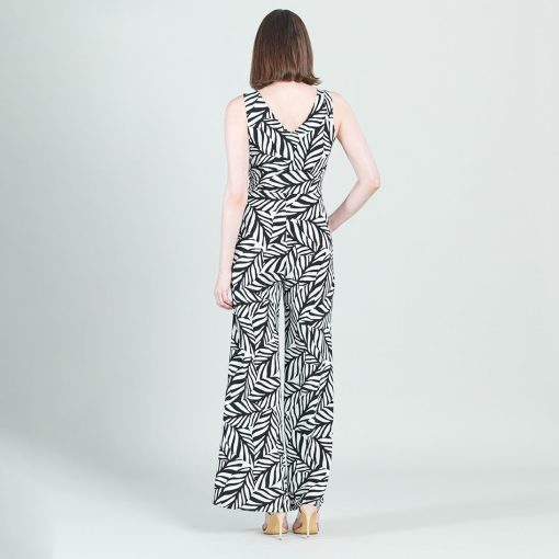 Let our Leaf Stripe Signature Jumpsuit help you to branch out! Designed to be an on-the-go, easy-to-wear – step in and pull on one piece with no zippers or ties! Featuring a graceful surplice neckline that gently wraps and contours your natural curves with a 4″ control waistband designed to provide a slimming and gorgeous silhouette. This look finishes with full-length, wide-leg palazzo pants making each stride as fluid and elegant as you feel. A large-scale leaf print in a stripe-like cluster, comprised of white and black shades. ♥ Each piece is a unique, one-of-a-kind print and print placement will vary. Carefree Travel Fabric – Soft Silky Knit Our signature poly blend fibers offer luxurious softness with lightweight, wrinkle-free comfort. This easy-care fabric is quick drying and cooler than linen or cotton, making it perfect for on-the-go wear.Wrinkle Free Travel Friendly Ultra Lightweight Soft Knit Fabric Breathable Jersey-Like Feel