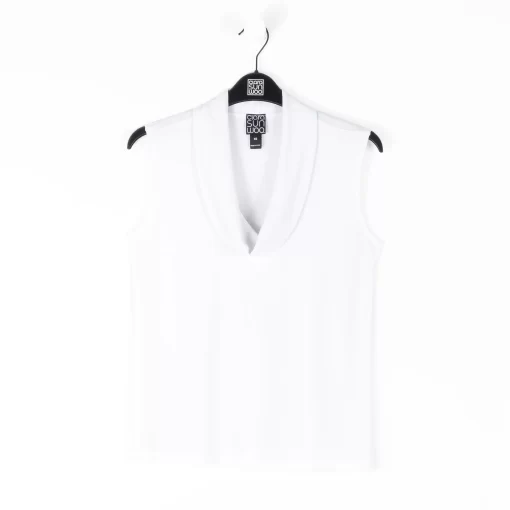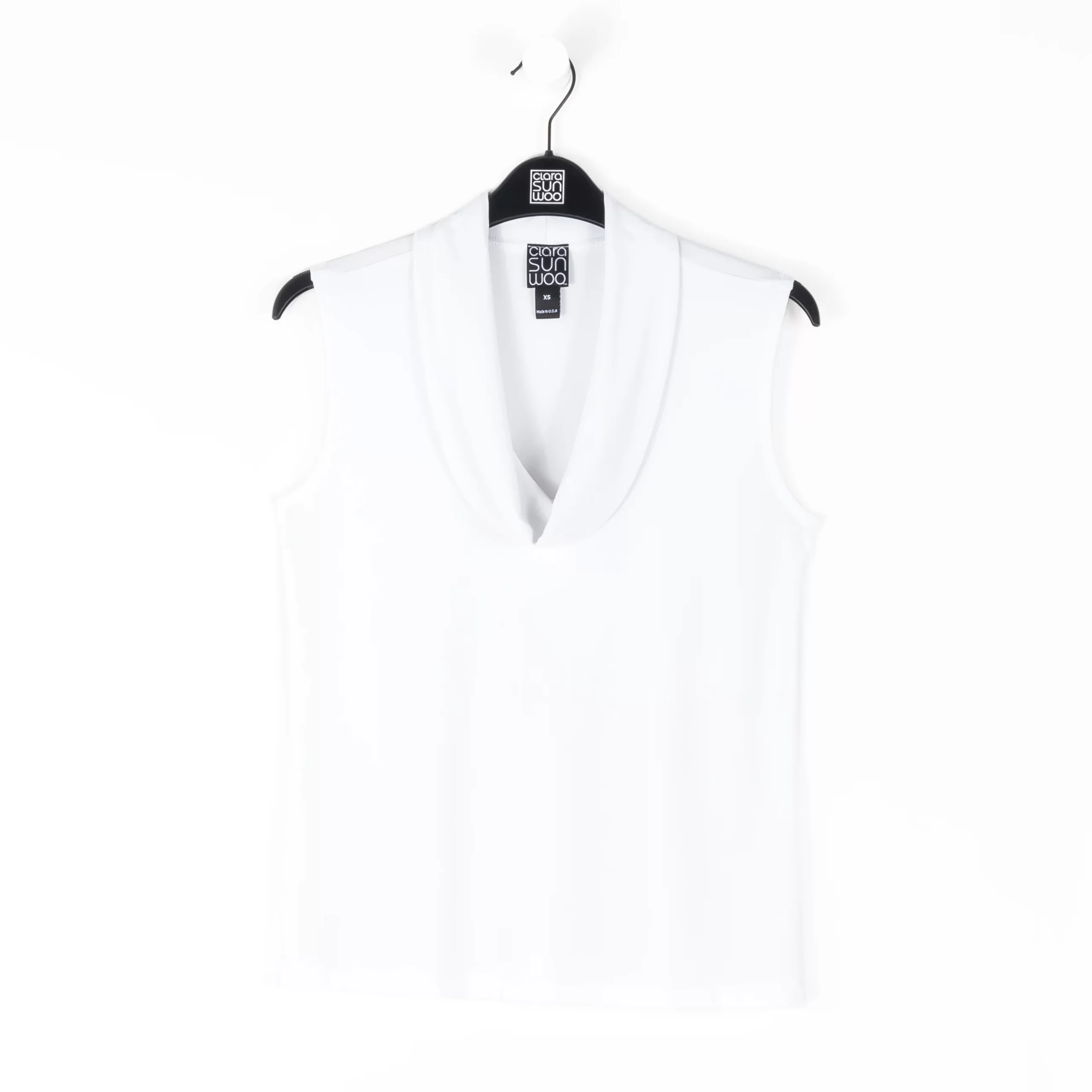 Our Sleeveless Draped Cowl Neck Top combines minimalist fashion with a modern twist! This sleeveless, bra-friendly top features a draped cowl neckline, bust dart details, and a straight hemline with 3″ side vents.Carefree Travel Fabric – Soft Silky Knit Our signature poly blend fibers offer luxurious softness with lightweight, wrinkle-free comfort. This easy-care fabric is quick drying and cooler than linen or cotton, making it perfect for on-the-go wear.Wrinkle Free Travel Friendly Ultra Lightweight Soft Knit Fabric Breathable Jersey-Like Feel