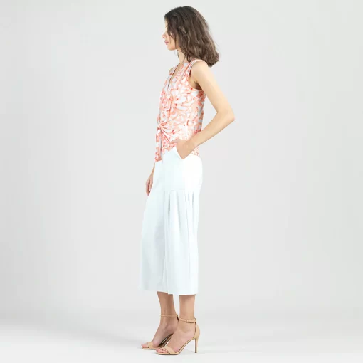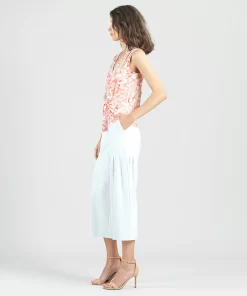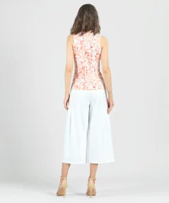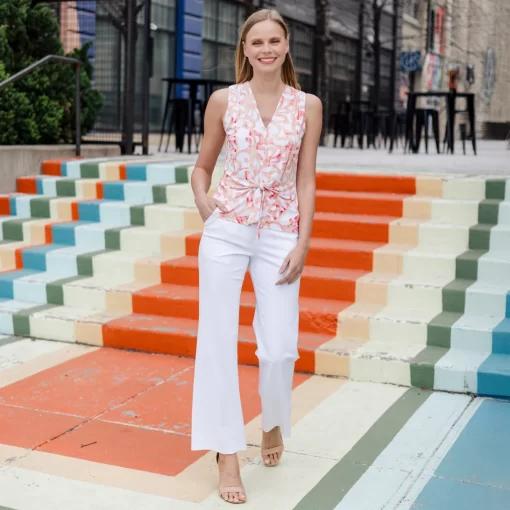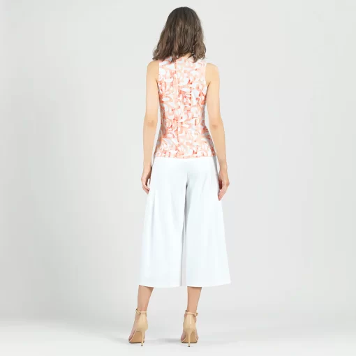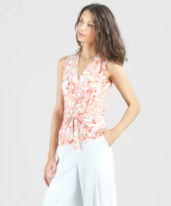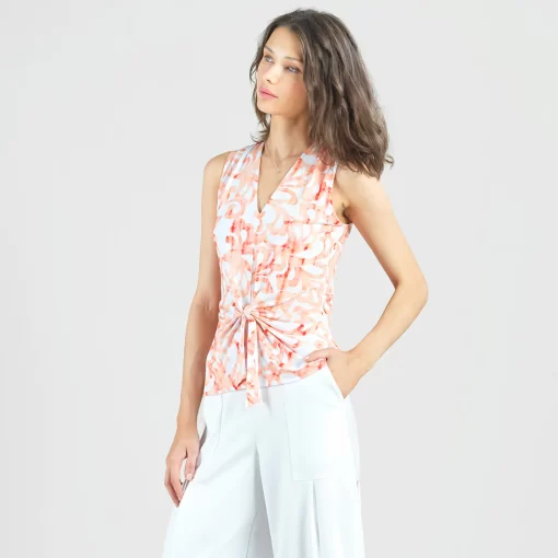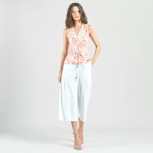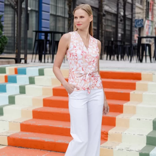 Clara Sunwoo Sleeveless V-Neck Center Front Tie Top – Damask Motif coralwhite | Womens Tops + Tunics