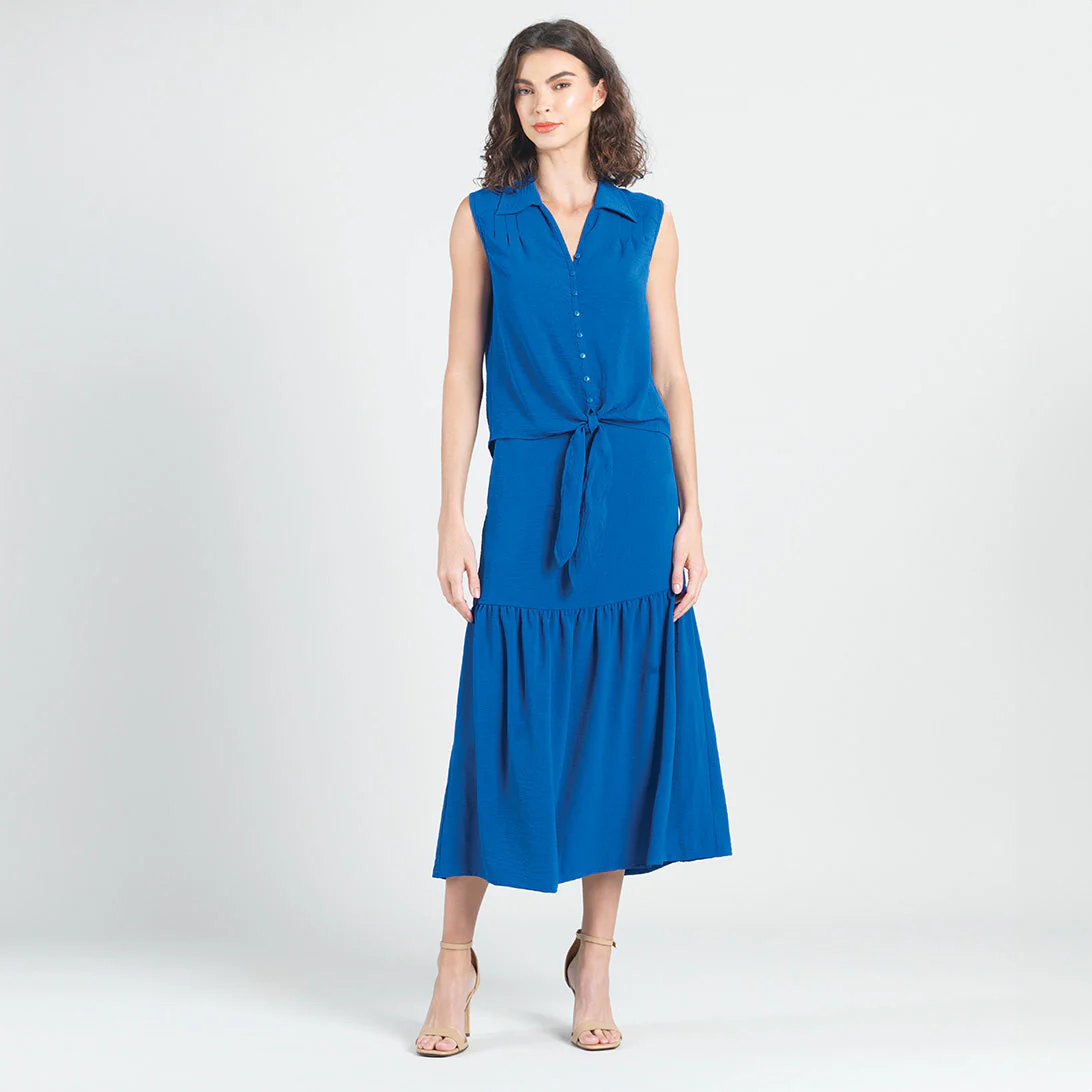 The best things in life are effortless, and our Textured Rayon Tie Waist Tiered Maxi Skirt is no exception! This style features a detachable belt tie, a 1.75″ pull-on elastic waistband with a gathered-back finish, standard side pockets, a single gathered tier, and an a-line shape with a flowing maxi hemline. ** Please refer to Size & Fit tab below – for sizing recommendations! Our rayon Cobalt shade is a true royal blue color with deep vivid undertones. A new, exclusive-quality matte fabric, inspired by upscale vacation wear. Designed with a soft fluid drape, vintage-like texture, and a light-medium weight finish. It is translucent and durable, allowing it to beautifully retain a luxurious look and eye-catching shape. Carefree Travel Fabric – Soft Textured Rayon Knit Our poly-rayon blend is a substantial light-medium weight fabric, with a soft flowing structure and a crinkle-like texture. This long-lasting fabric is sturdy yet breathable and is easy to maintain. It is thinner than linen, cool to the touch, offers comfortable wear, and is a versatile material so it works for many different occasions!Detachable Belt-Tie 1.75″ Elastic Waistband Two Side Pockets Vintage-Like Texture Travel Friendly Light-Medium Weight Fabric Breathable and Sturdy Finish