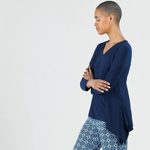 Clara Sunwoo V-Neck Side Flow Top – Navy – Final Sale! navy | Womens Modern Basics