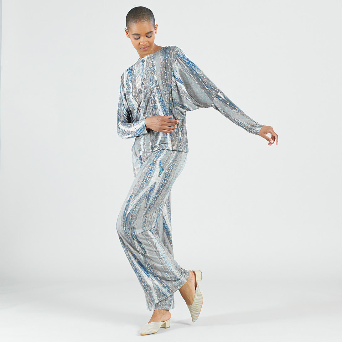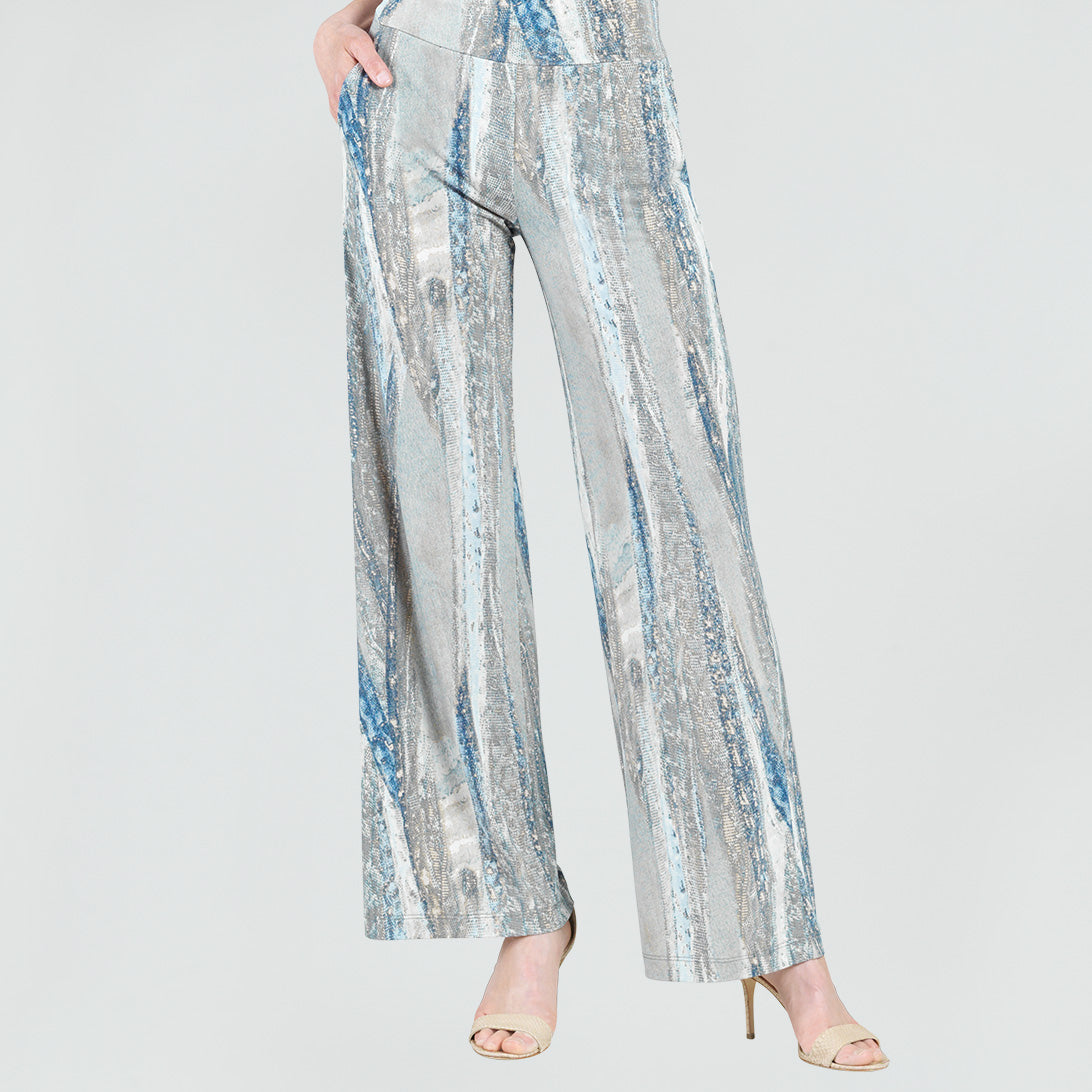 Let our Python Taupe Wide Leg Pocket Pant slither its way into your closet! Featuring a loose-fitting straight-leg silhouette with a 3” pull-on soft waistband and 2 side pockets designed to naturally flow against the body. A unique python-like print comprised of beautiful shades of taupe, tan, and subtle hints of navy and pale olive undertones, that come together to create an abstract scale effect. ♥ Each piece is a unique, one-of-a-kind print and print placement will vary. Carefree Travel Fabric – Soft Silky Knit Our signature poly blend fibers offer luxurious softness with lightweight, wrinkle-free comfort. This easy-care fabric is quick drying and cooler than linen or cotton, making it perfect for on-the-go wear.3″ Soft Waistband Side Pockets Wrinkle Free Travel Friendly Ultra Lightweight Soft Knit Fabric Breathable Jersey-Like Feel