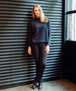 Clara Sunwoo Waffle Knit – Funnel Neck Sweater Top – Navy – Final Sale! navy | Womens Sweaters